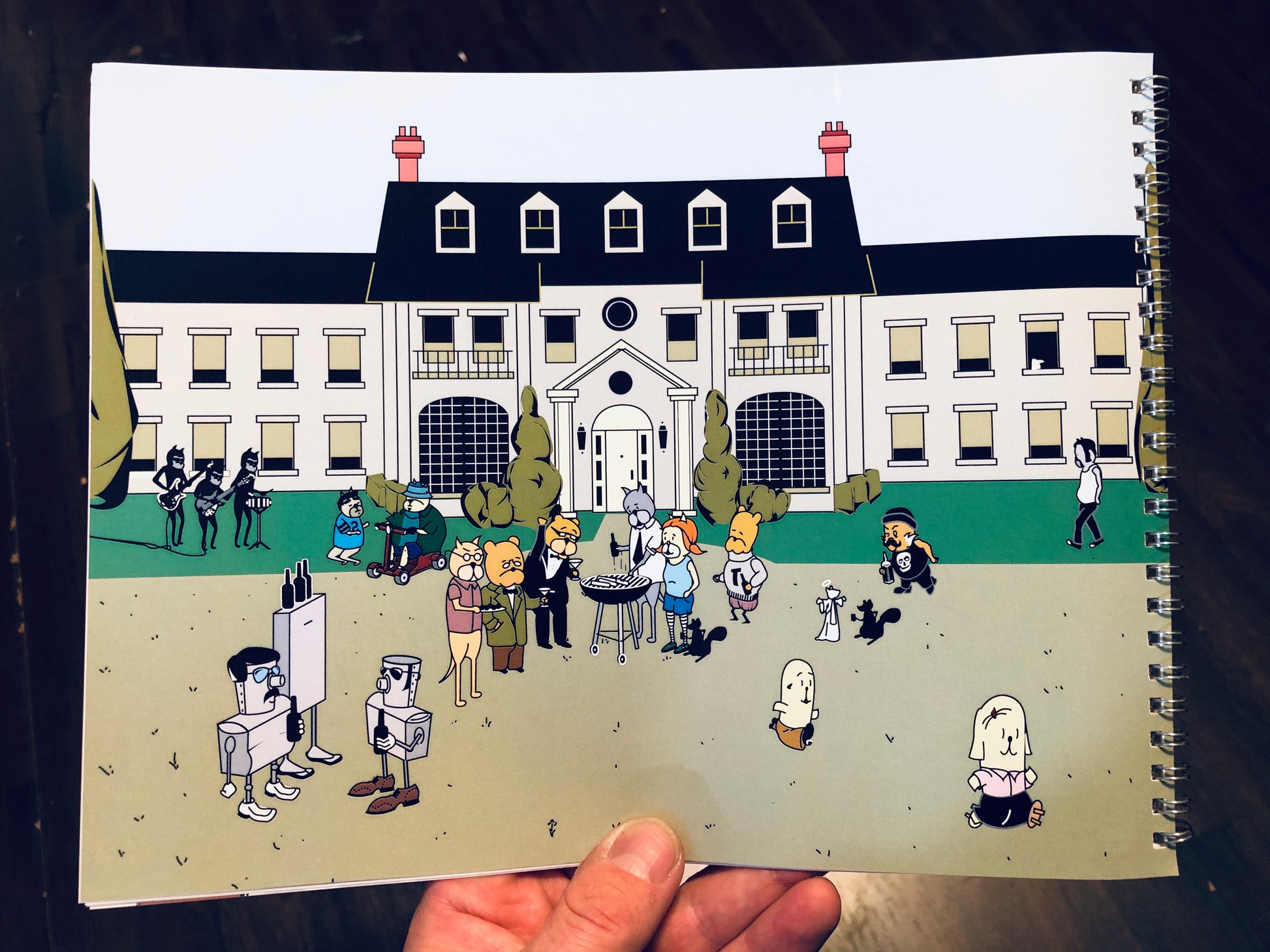 A few years back, I worked with some fancy Hollywood people and some Russian computer programmer geniuses who wrote some MoCap middleware they wanted to test out, and we made a reel of Achewood animated shorts (which you can find on YouTube somewhere). We shopped it pretty hard and though it never sold, the experience was extraordinary. This is the "bible" (aka pitch deck) with which we shopped the show. Twenty-four pages of character bios, premises of the shorts, production notes, etc. Yes, the guys in the MoCap suits in the photo were doing the "Beef delivers the Kermit The Frog Mega Memory Challenge" bit. A must for any Achewood completist. Signed on title page (see pics).