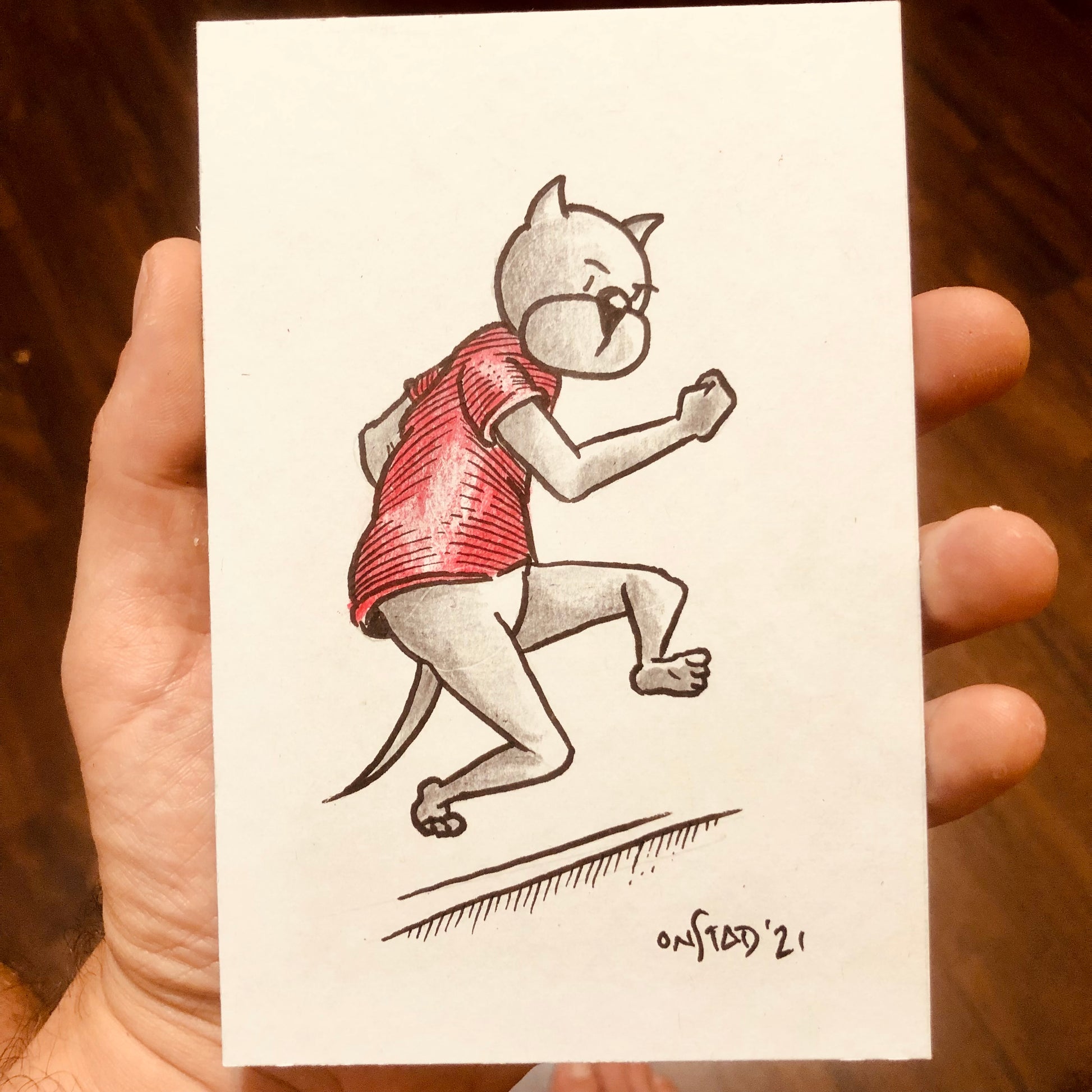 One of a series of 4x6” original pen and pencil character portraits. On stiff cream-colored matte board.