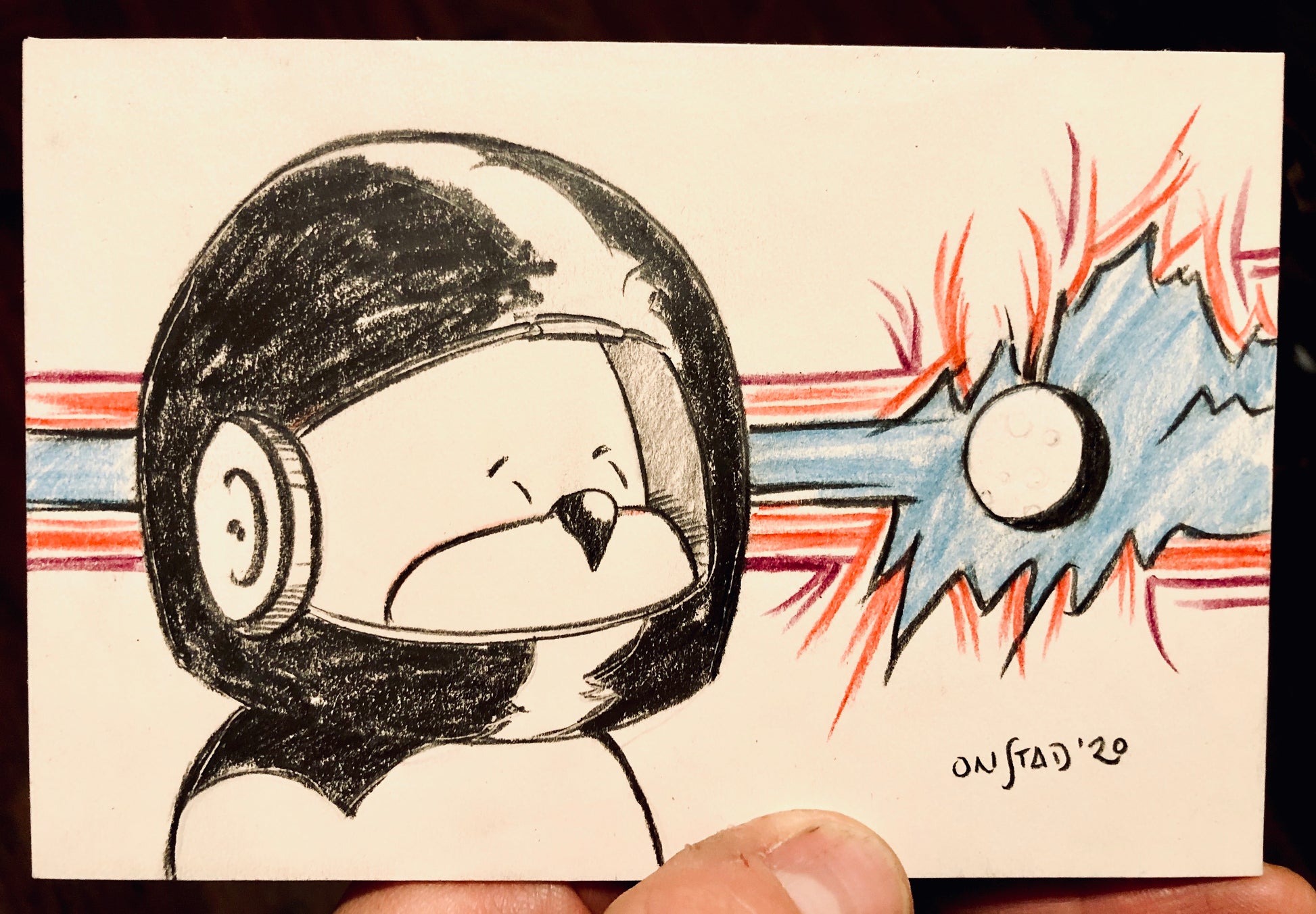 We all know that Roast Beef often considers the dangers of the galaxy. Here, he may actually be considering its beauty. It's up to you. 4x6” pencils on stiff white paperboard.