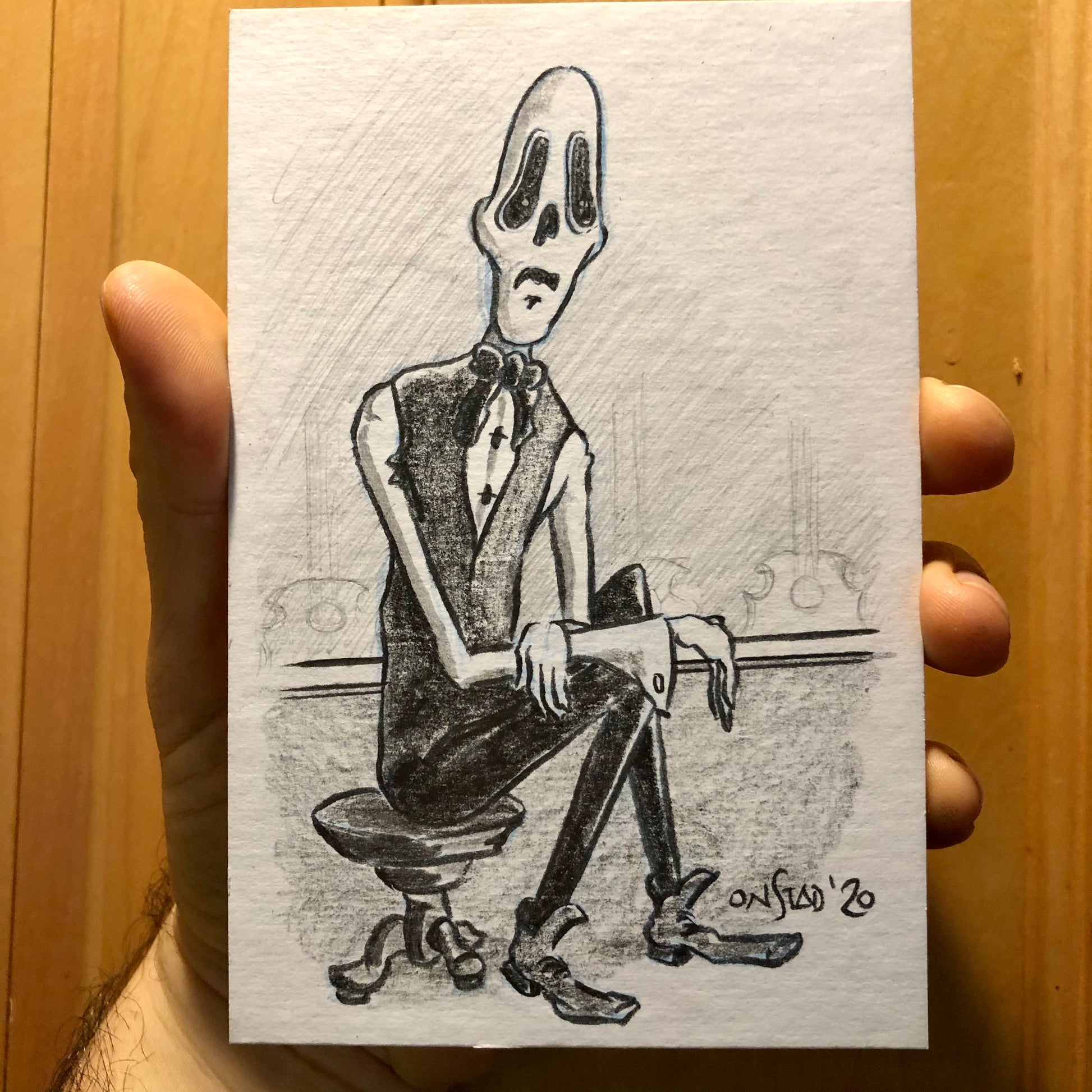 Just horsing around again with ideas about how ghostly specters might value and produce selfies. 4x6” pencils on stiff white paperboard.