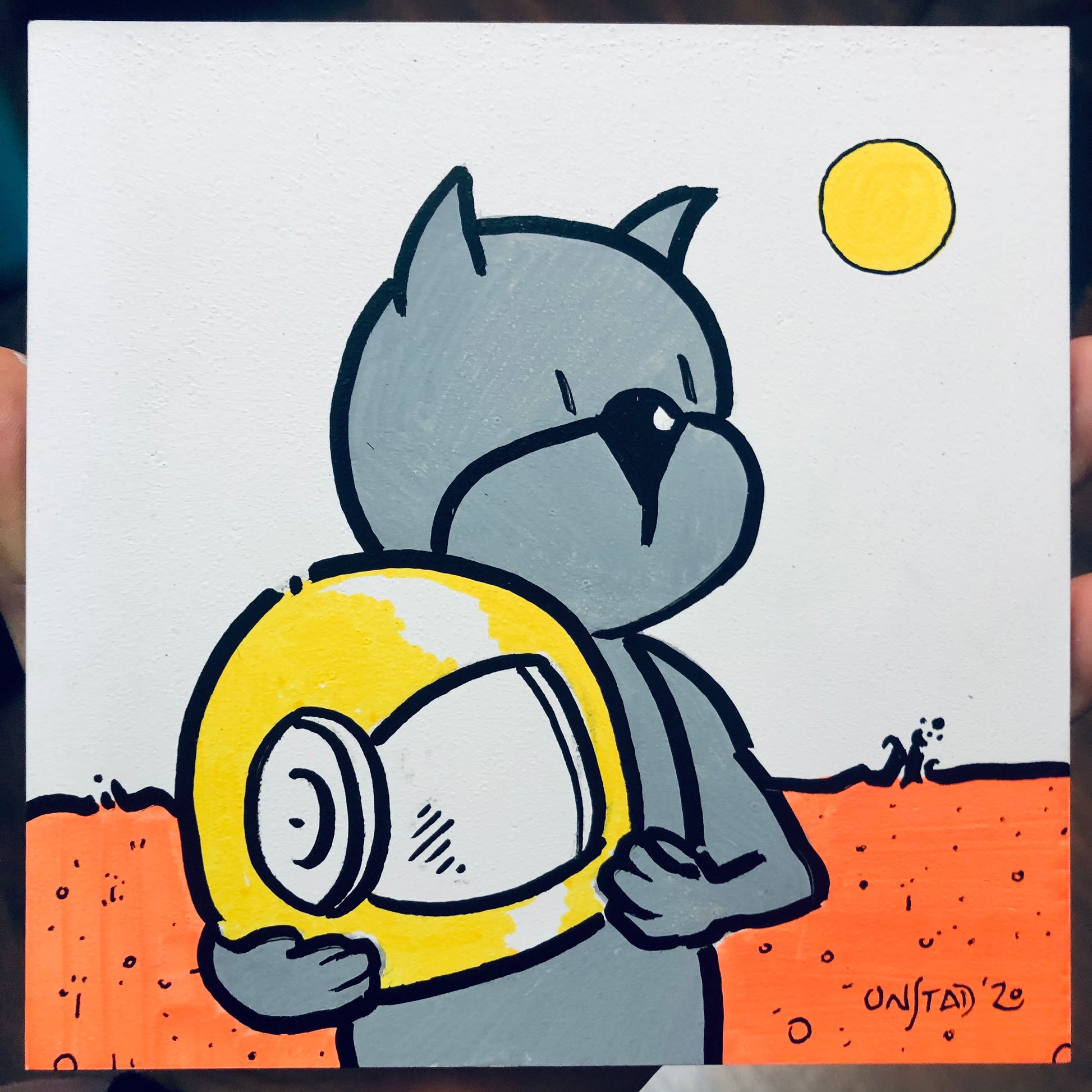 Roast Beef, surveying Cold Area Seven, pauses to reflect on just how many atoms are dedicated to meaninglessness before getting back to his baloney and mustard sandwich. 6" square, oil pen on sealed bright white gesso board, 1/8" thick.