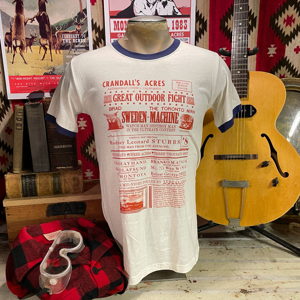 Wear the vintage 1973 Great Outdoor Fight promotional artwork on your chest and let them all know that you believe in cats kicking each other's asses this much.