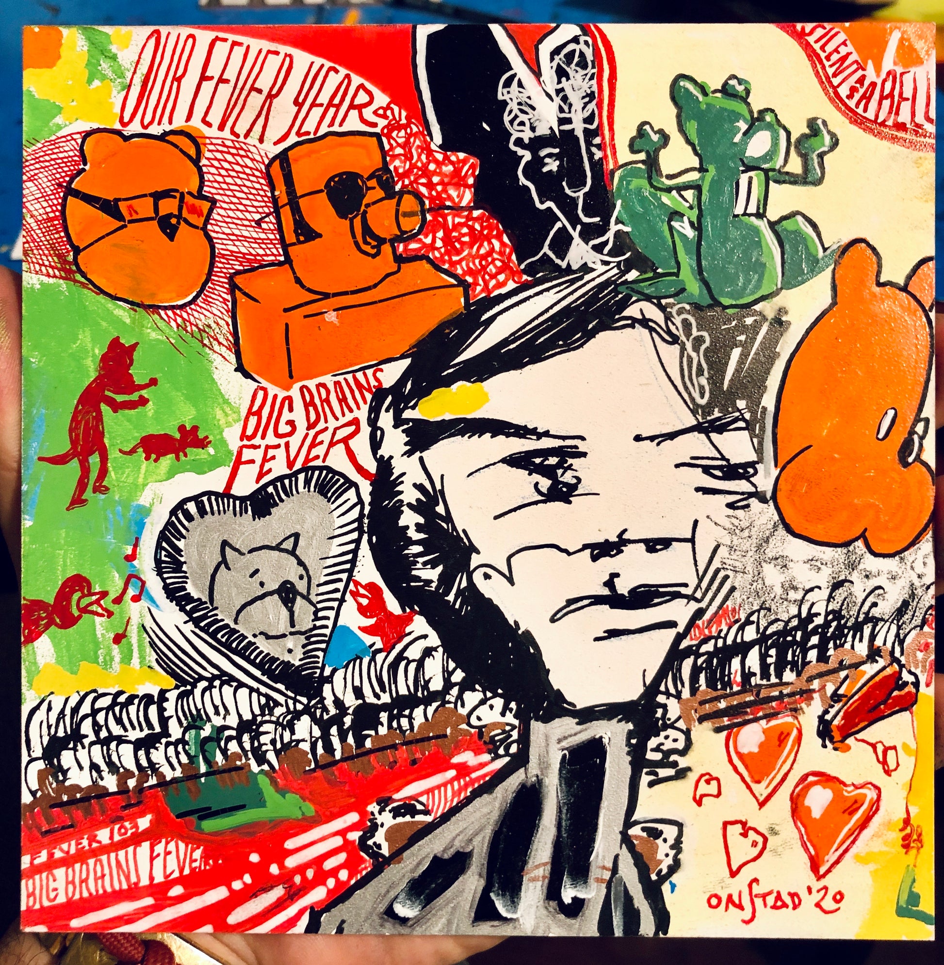 Inspired by the freedom I feel when scritching around on my start-board/blotters, I put together a few stream of consciousness panels. These are my feelings during the time of Covid 2020, while I float around in the space station of my house, securing access panels and cooking Astro-Pouch Hotdog Supper A#2719-15. 6” x 6” oil pens on bright white gesso hardboard.