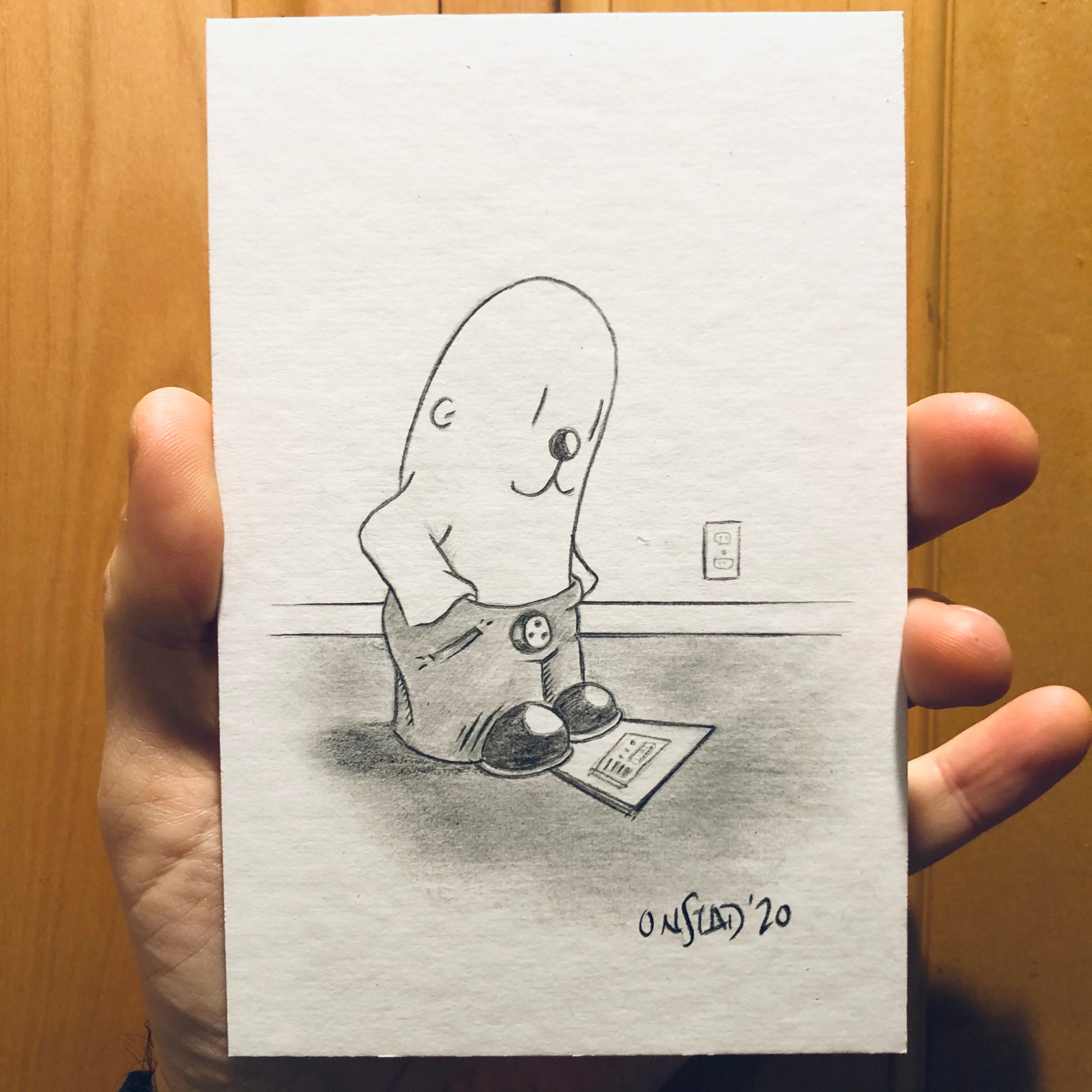 A study of the moment that started it all. 4x6” pencils on stiff white paperboard.