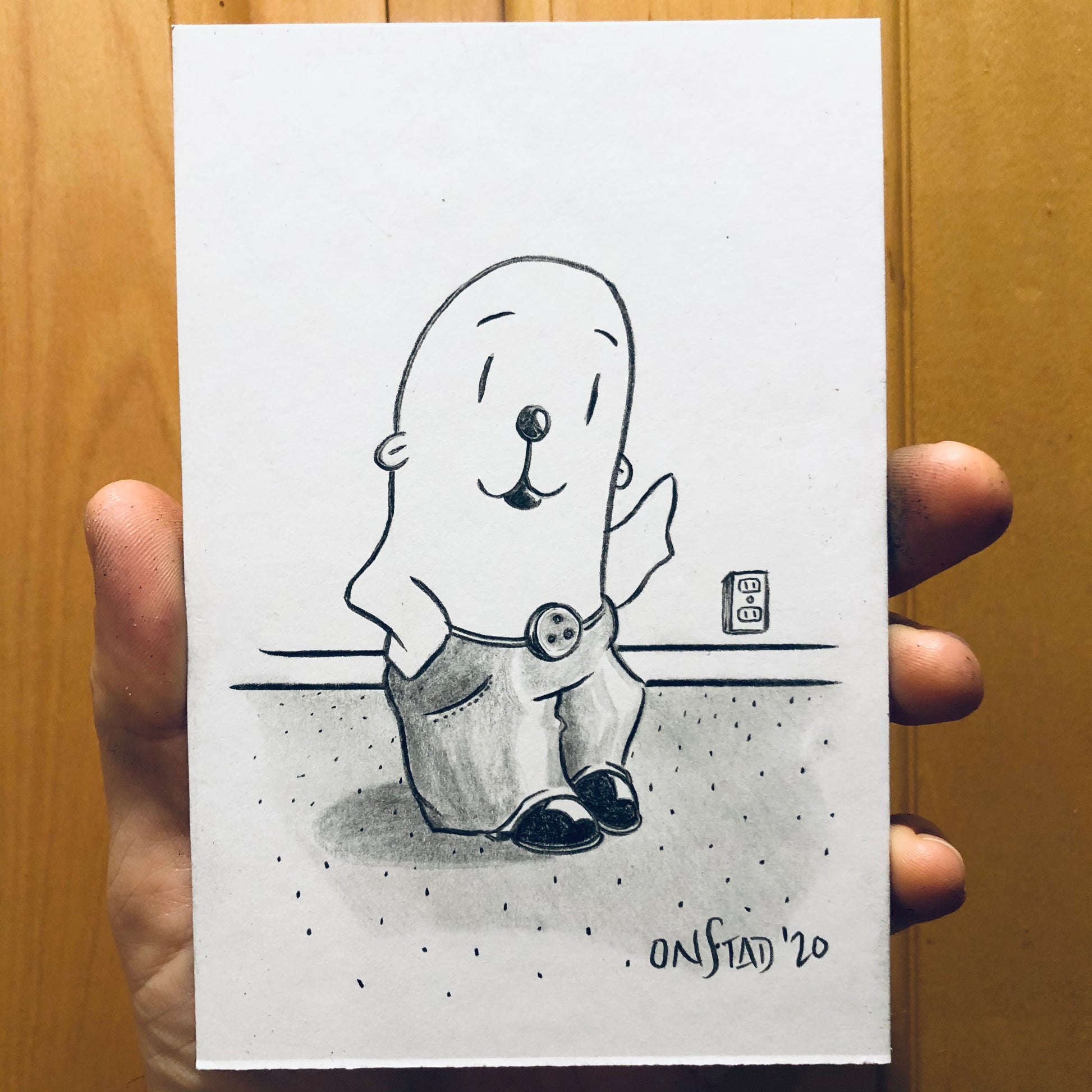 Here Philippe pretends he goes to the school and gets the school portrait. 4x6” pencils on stiff white paperboard.