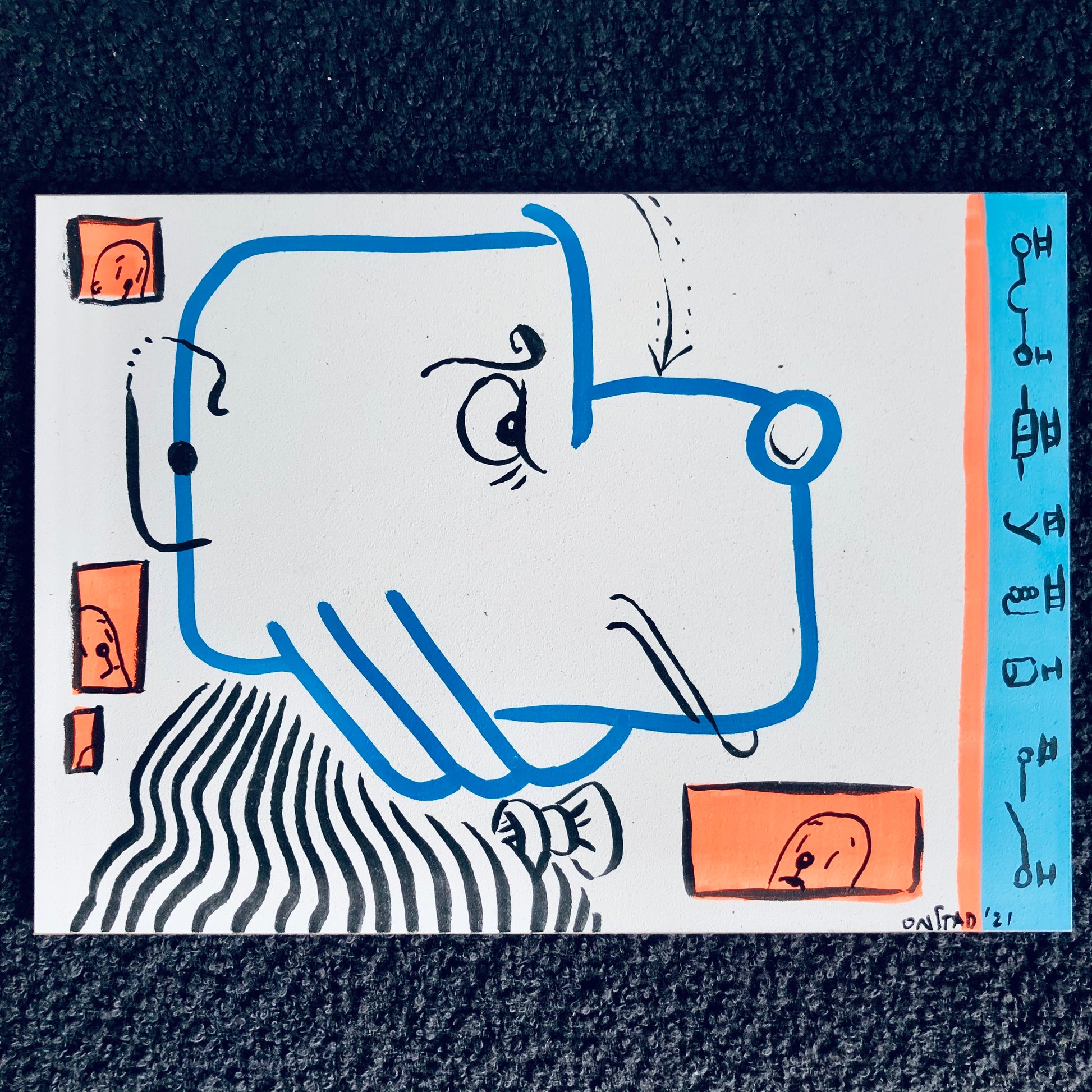 This panel is the best we can do at representing visually the way this young boy’s dreams feel. One of a series of framed 5x7” original oil pen illustrations. 1/8” gesso board, ready for framing!