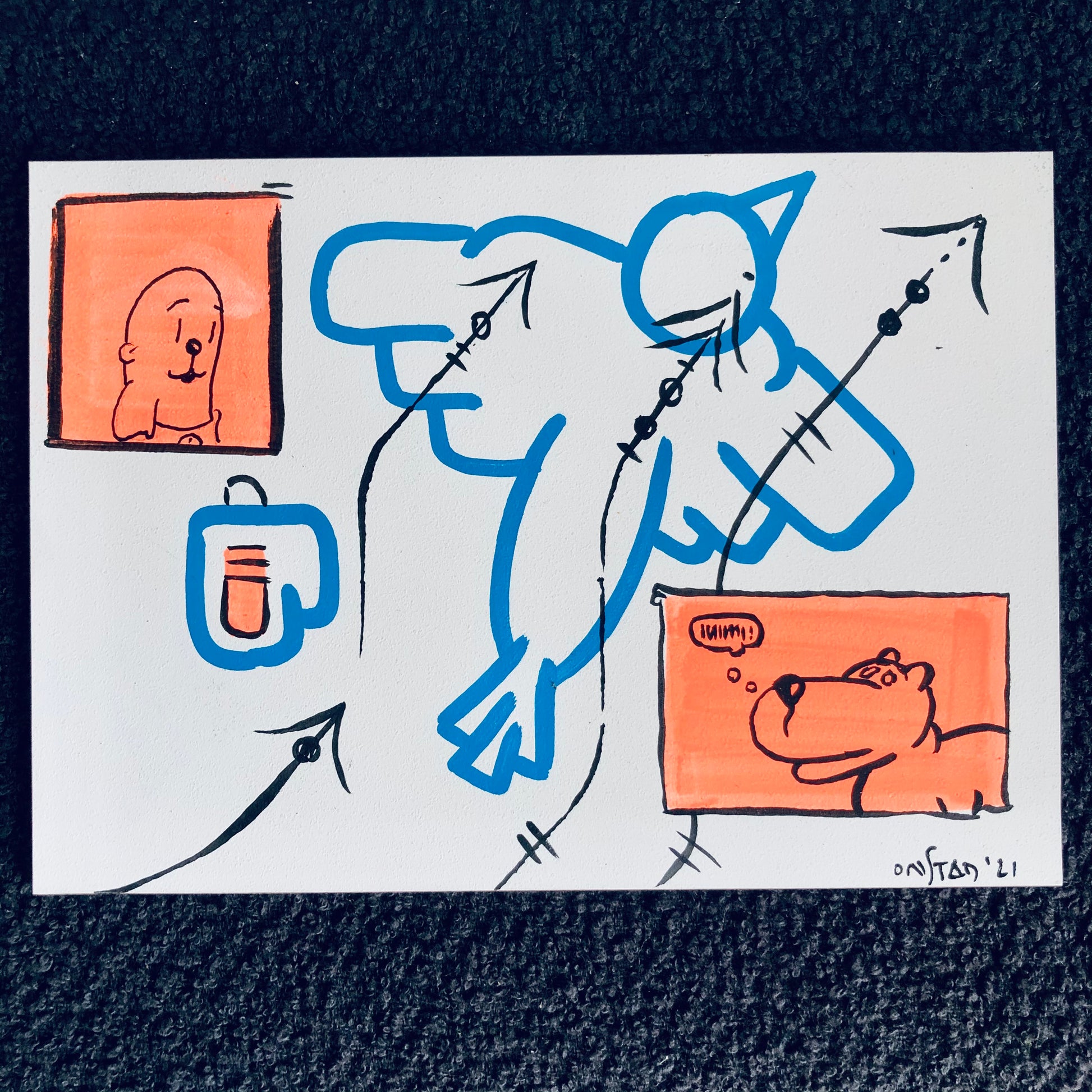 This panel is the best we can do at representing visually the way this young boy’s dreams feel. One of a series of framed 5x7” original oil pen illustrations. 1/8” gesso board, ready for framing!