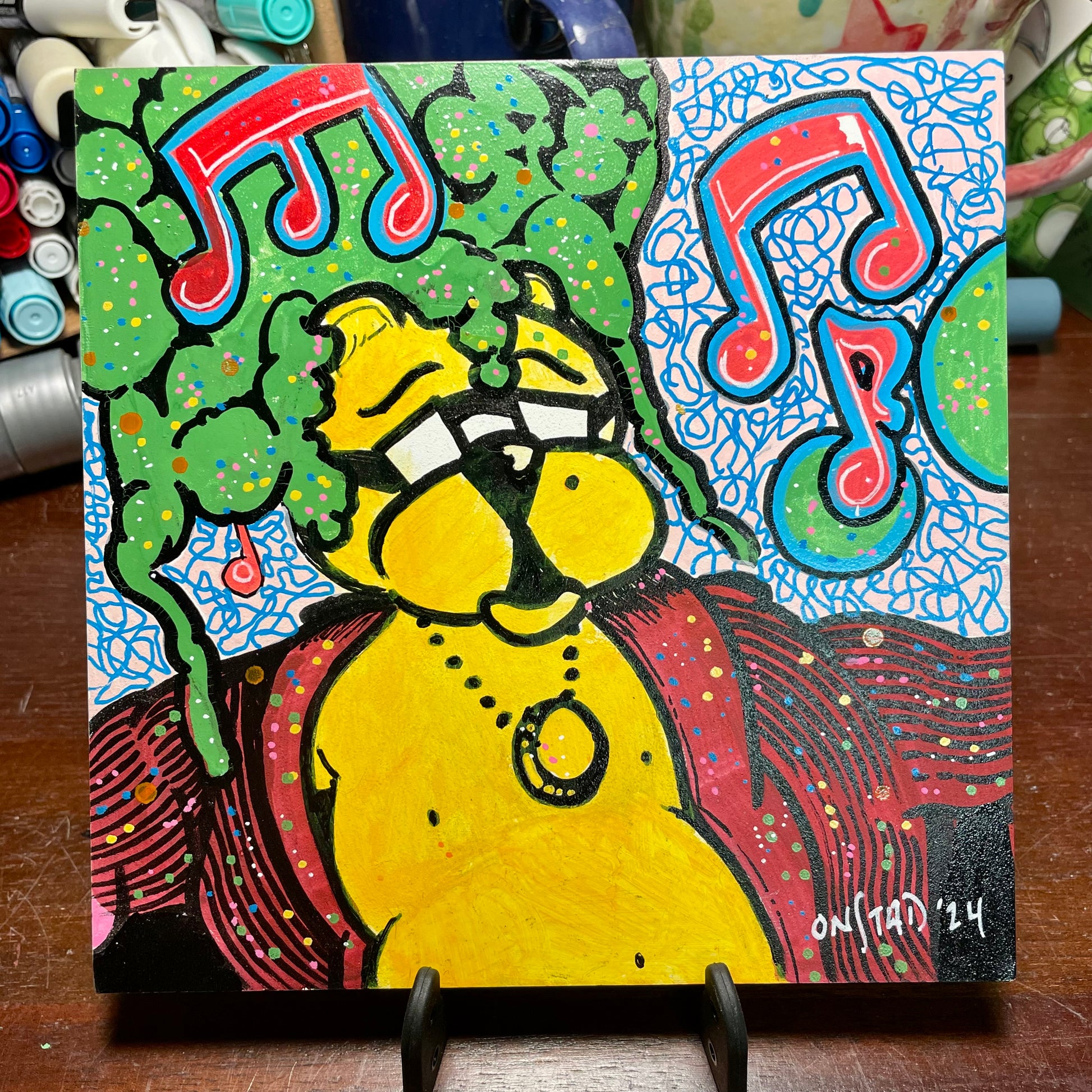 The man is delighted and experience is limitless, if you molecule like a prince and slip into consequence. 6" square, oil pen on sealed bright white gesso board, 1/8" thick.