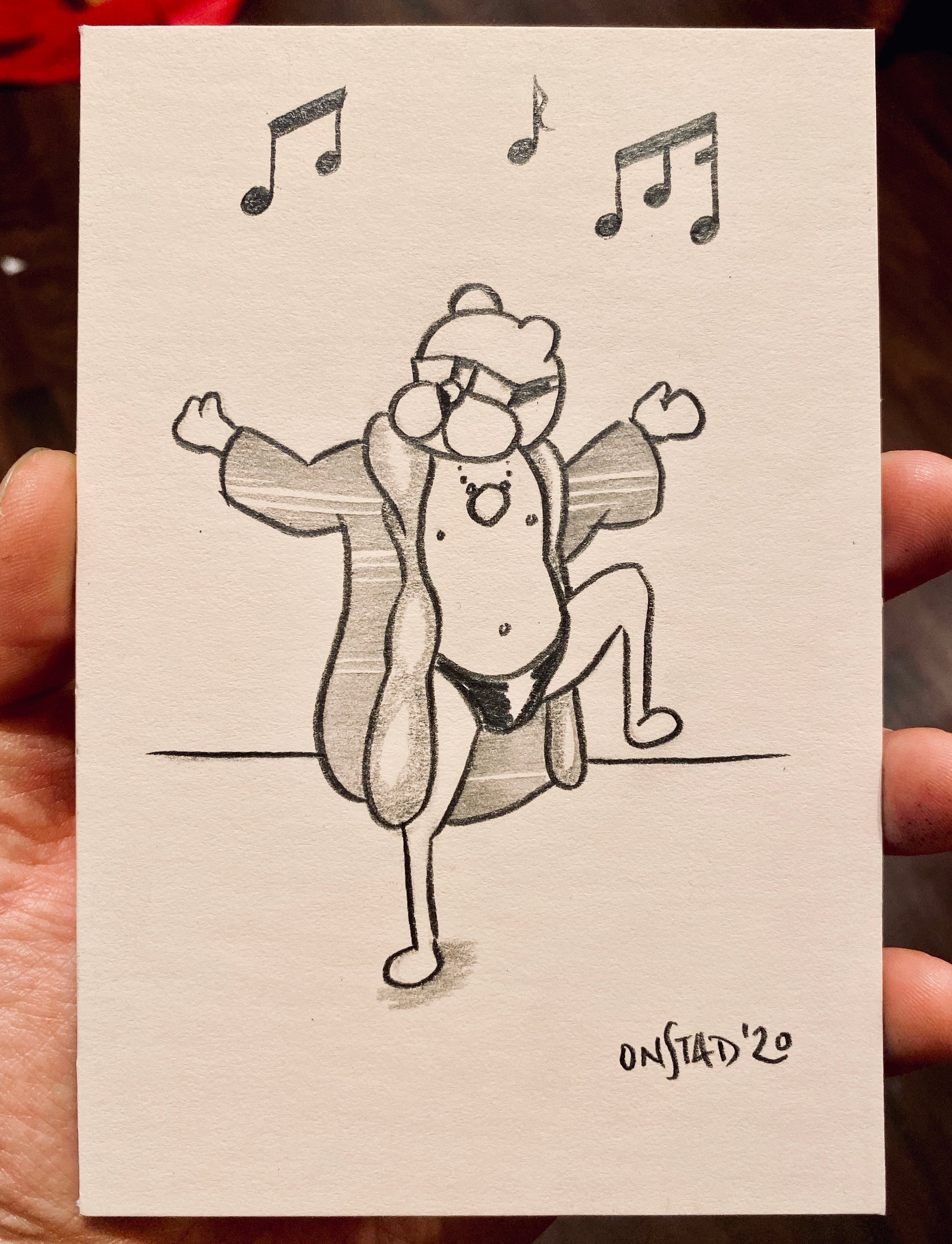 This is the panel that prompted Toto to write Africa, knowing that someday this cat would dance this way to their masterpiece. 4x6” pencils on stiff white paperboard.