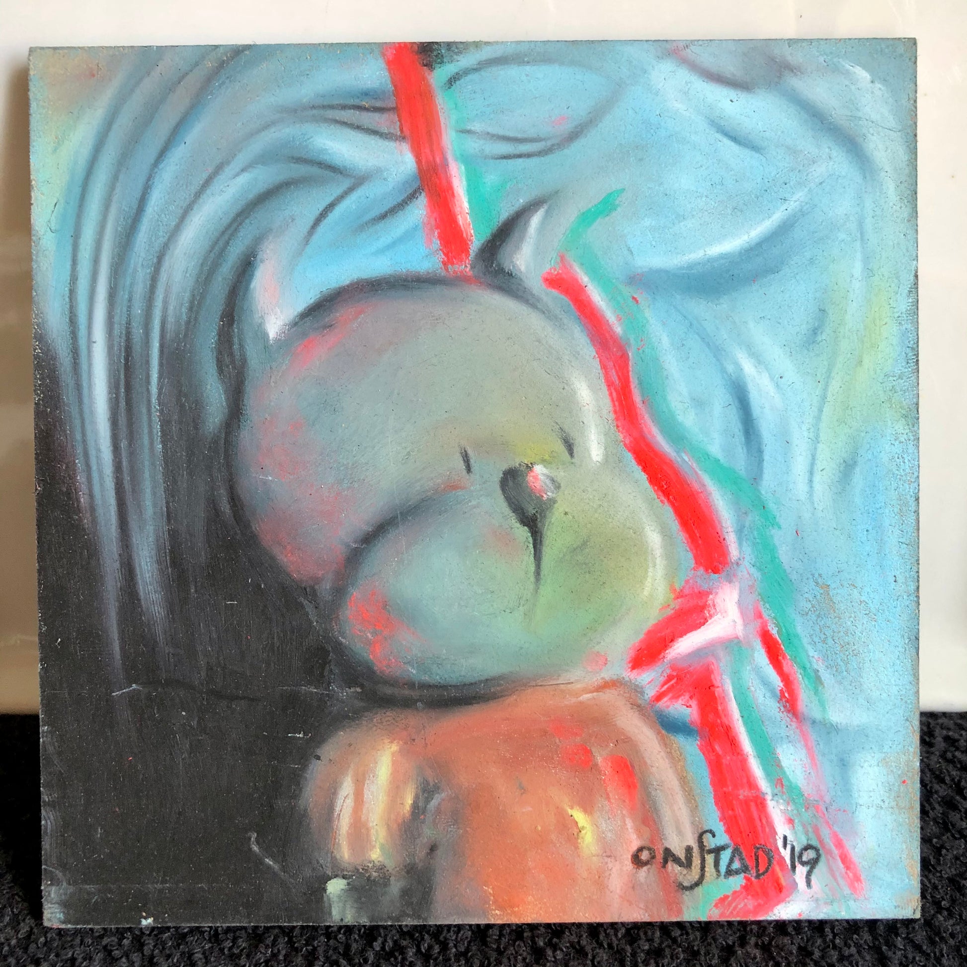 6”, hardboard, oil pastels.