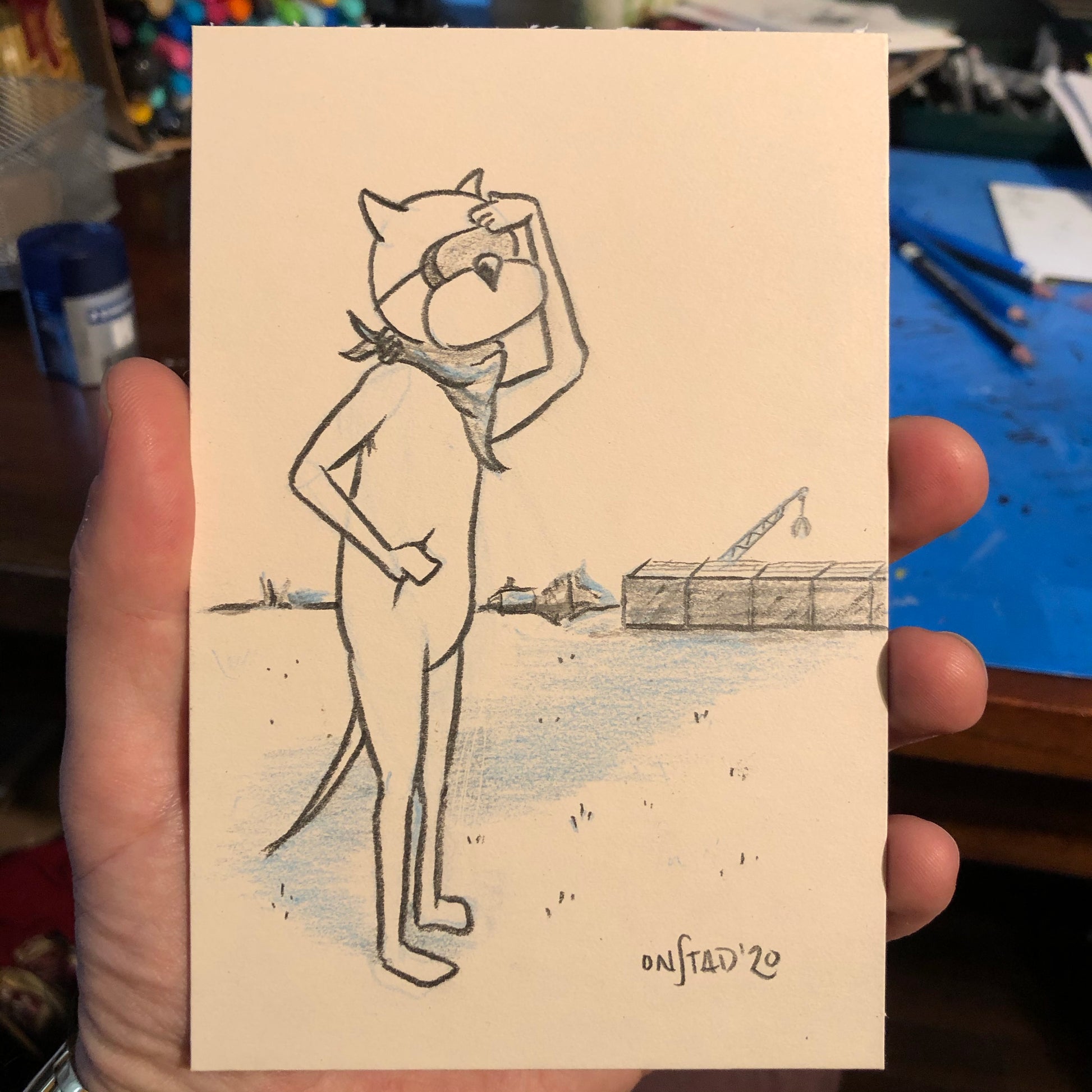 From simply reading the angle of the sun he can determine who falls next beneath his shadow. 4x6” pencils on stiff white paperboard.