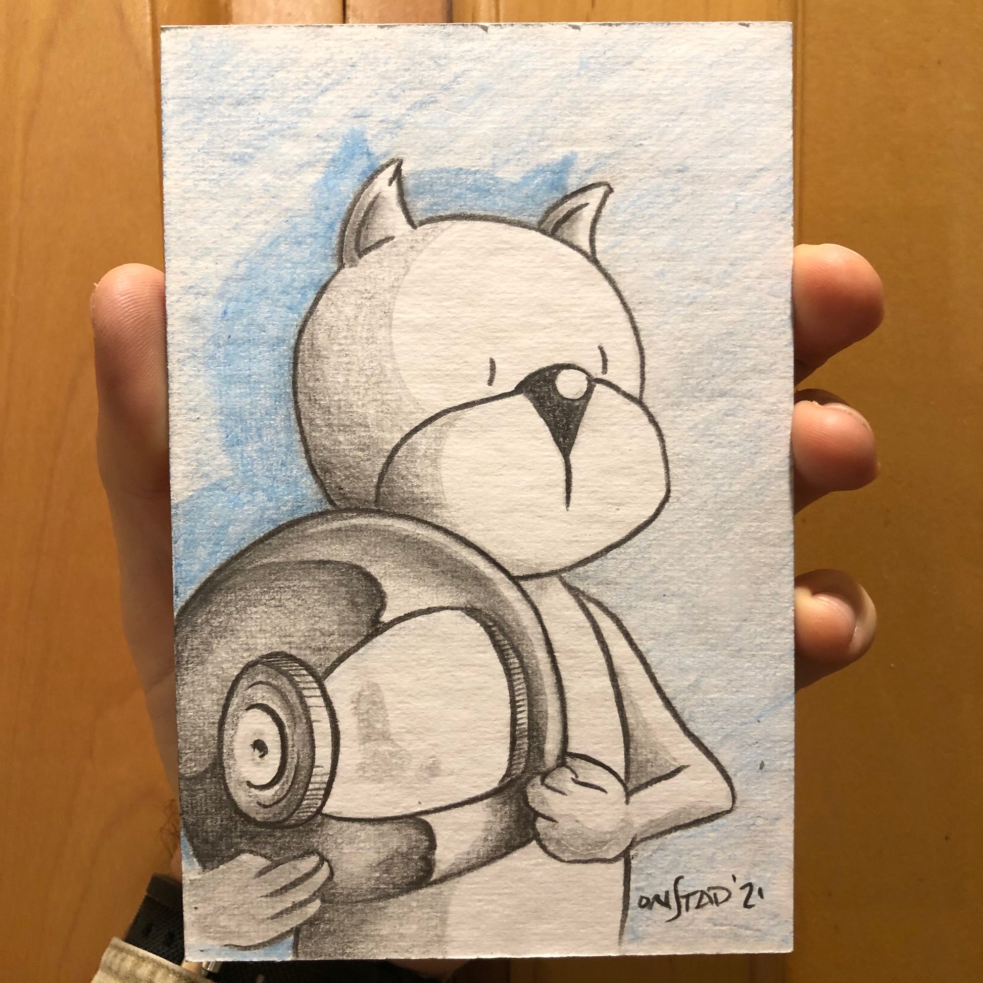Our man Roast Beef, patience for the flashbulbs of every waking moment. 4x6” pencils on stiff white paperboard.