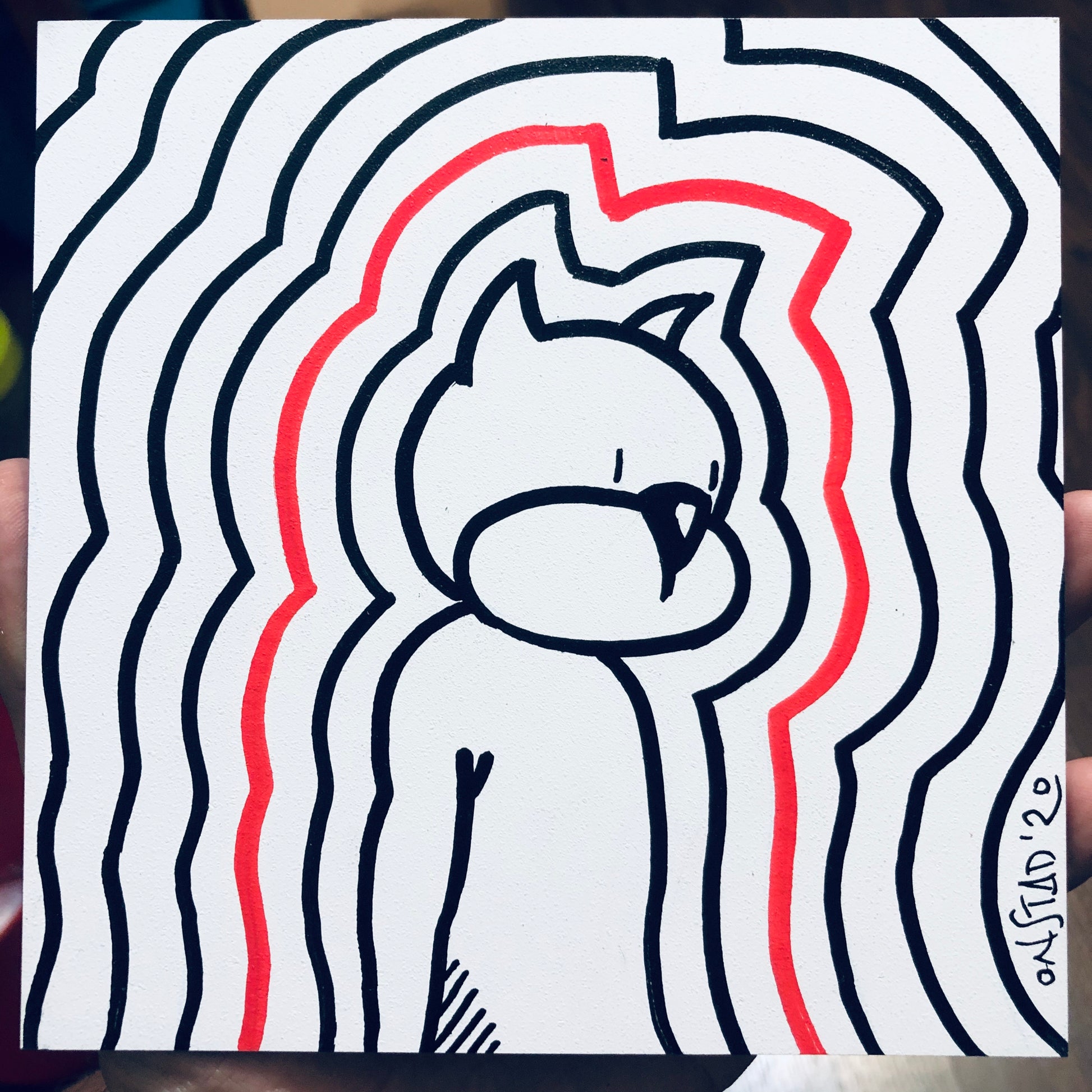 The government equipment which measured Ray's smash-dastic mega-aura was only able to get this reading off of the congenitally reticent fellow. 6" square, oil pen on sealed bright white gesso board, 1/8" thick.