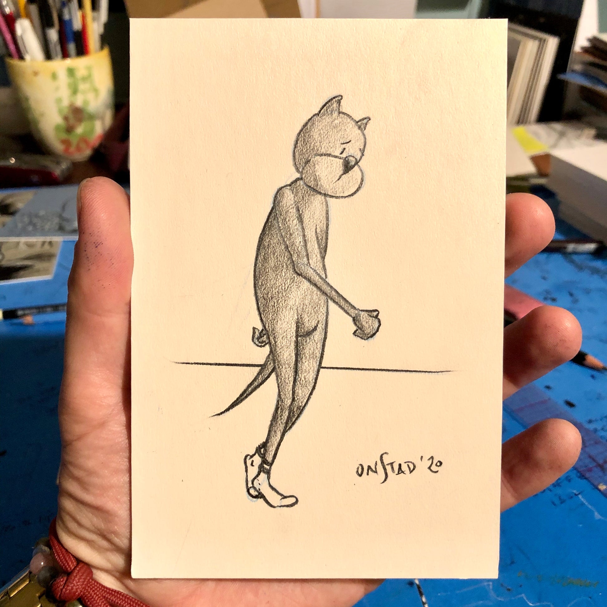 If you found yourself thinking "it me" upon viewing the detached and drifting form of R. Beef Kazenzakis here, this just might belong in your own home or workspace. 4x6” pencils on stiff white paperboard.
