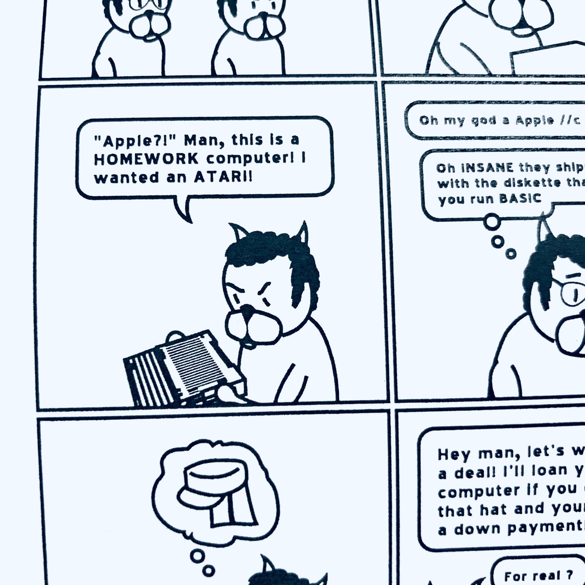 Back in the early days, we self-published all our comics in these tidy little bound volumes. This 150+ page Vol III., The Devil's Dictionary, containing all strips from 12/2002 - 8/2003, also features a chapter of Nate Small, One Tough Man; a long-form Serializer strip; a gigantic six-page bad date story by Ray (originally appeared at Ray's Place); and a Pork Chops Milanese recipe by Téodor. These particular MINT ORIGINAL CONDITION editions of Volume Three were printed before 2009 and stored sealed in plastic. There are only two dozen of these left anywhere. Please do not delay in ordering if interested. Please indicate in the Notes field if you would like your copy signed.